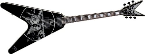 Dean NEW Eric Peterson Signature Model has arrived! Eric has been Dean Artist for many years, his signature model now available to all Dean and Testament fans! Eric Peterson Signature Old Skulls V features ~Solid Mahogany Body ~24 3/4" Scale ~Set Mahogany Neck ~Rosewood Fingerboard ~Pearl Block Inlays ~Grover Tuners ~Black Hardware ~Tune 0 Matic Bridge ~EMG 81 Bridge/EMG 85 Neck Pickups ~Old Skulls Custom Graphic with matching headstock